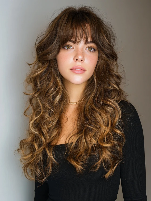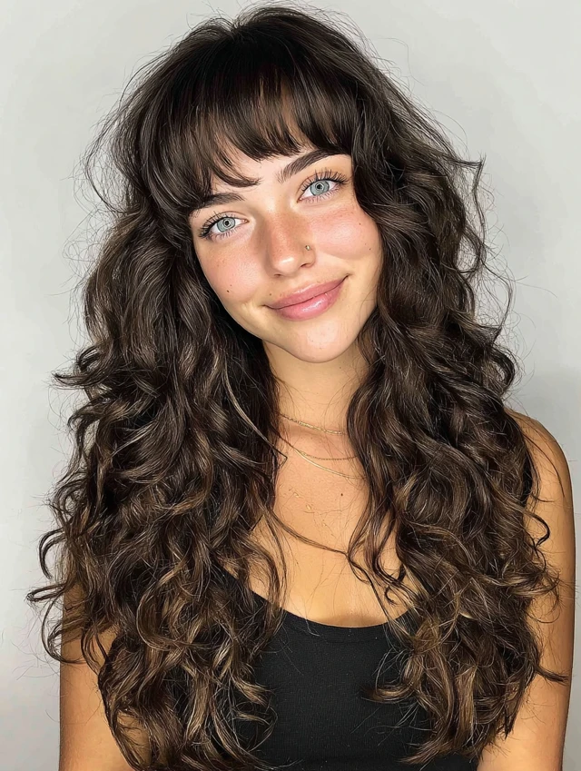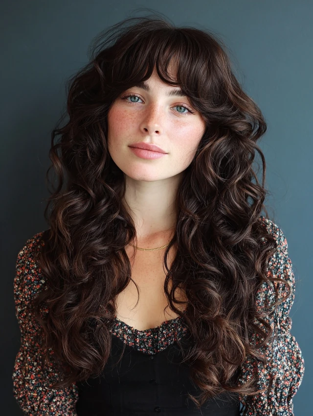 Long Curly Hairstyles with Bangs: Voluminous, Face-Framing & Effortlessly Stylish