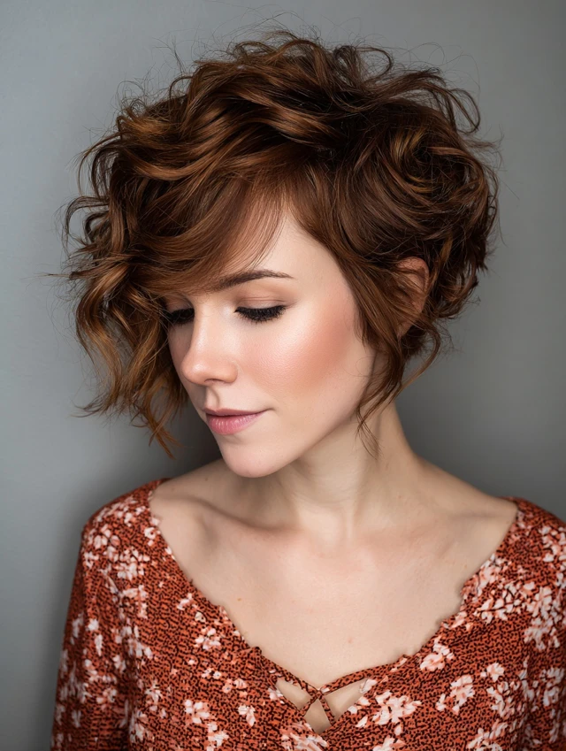 Let your natural waves or curls shine with a slightly longer pixie bob that embraces texture.
